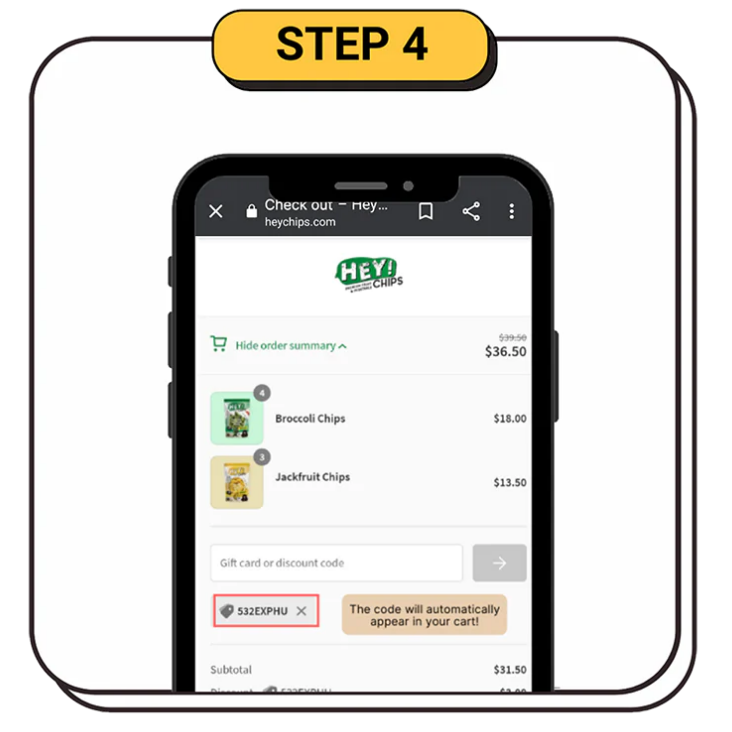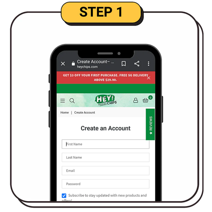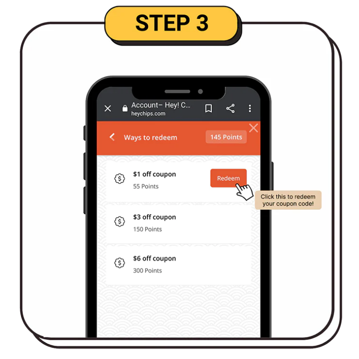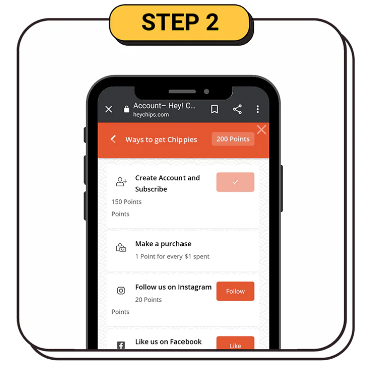 Friend of Hey! Chips Rewards is our free rewards program that allows our customers to earn points on all purchases, social shares and referrals.